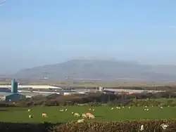 On the seaward side views extend from the Cumbrian coast, and from Criffel, 49 mi (79 km) to the north, a mountain on the Scottish coast near Dumfries, round to the Isle of Man, 45 mi (72 km) due west, then round to Snowdon which may be seen on days of exceptionally good visibility, 85 mi (137 km) to the south, to the coast of Lancashire. On the landward side, views include the Scafell Group and the Coniston Group of fells in the Lake District National Park, including four 3,000 ft (910 m) mountains: Skiddaw, Scafell, Scafell Pike and Helvellyn. To the east and south the Pennine Hills, the Forest of Bowland and Blackpool Tower are visible. Closer by, there are also good views over the Duddon Estuary, Millom and the wind farm just offshore.[1][3][4]