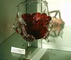 By the main entrance in the old Rolfe Street Baths from Smethwick (1888) are displays of local artefacts encompassing some of the many products which were made by Black Country industry, cast iron hollow ware, animal traps, vehicles, chain, anchors, enamels, weighing scales, laundry irons, nails, locks and fire clay products. The exhibition includes more fragile items such as glassware, reflecting the centuries-old industry that produced lead crystal glass and the Joseph Chance glass works between Oldbury and Smethwick.