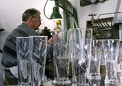 The nail shop is a replica of a back-yard workshop, built in the 1880s from 17 Chapel Street, Halesowen.[15] It houses equipment from the Halesowen workshop operated by Sidney Tether in the 1940s.[16] It is in use on a regular basis by the resident nail maker who demonstrates the skill of forging nails by hand.
