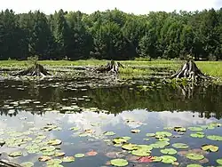 The bogs at the park contain large amounts of sphagnum moss; this decomposes very slowly, causing layers of dead moss to build up at the bottom of the bog, creating peat.[44] In 1994, 1,592 acres (644 ha) of bog at the state park were protected as the "Black Moshannon Bog Natural Area";[44] this was originally conceived as part of the State Parks 2000 strategic plan of the DCNR, and fourteen years later the total area of bog protected as a Natural Area had increased to 1,992 acres (806 ha).[45]