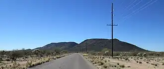 Black Mountain is a lava capped mesa in Pima County, Arizona, that rises 1,000 feet above its base to an altitude of 3,700 feet (1,128 m). It is a northeast trending ridge, 5,600 feet in length, located along Mission Road nine miles southwest of Tucson. It is on the San Xavier Indian Reservation, 3.18 miles southwest of the Mission San Xavier del Bac.[3][4] The Sierrita Mountains rise to the southwest and the Santa Cruz River is about four miles to the east.[4]