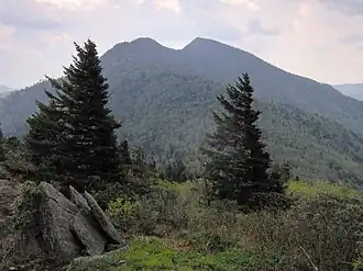 Cattail Peak | 6,583 ft/2,006 m | North-central Blacks | 35.798413, −82.256502 | Possibly named for mountain lions that may have once frequented the summit |