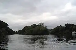 The island is a tree-covered triangle which is now at the mouth of the Jubilee River. It was a favourite area for fishing for Charles II, Henry Wotton and John Hales.[1]