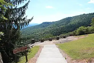 There are five hiking trails through forests, alongside mountain streams and around 17-acre (6.9 ha) Black Rock Lake. The 2.2-mile (3.5 km) Tennessee Rock Trail crosses Black Rock Mountain's north slope before climbing across the mountain's summit and following the Eastern Continental Divide.[2] From the trail's namesake feature, Tennessee Rock, vistas can be seen that extend northward into the Great Smoky Mountains National Park, including Kuwohi, the highest point in Tennessee.