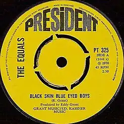 "Black Skin Blue Eyed Boys" is a song written by Guyanese-British musician Eddy Grant and recorded in London in 1970 by his band the Equals. Their recording, produced by Grant, reached number 9 on the UK Singles Chart in January 1971 and was the band's last chart hit.[3]