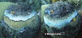 - ^ Richardson, L.L; R.G. Carlson (1993). "Behavioral and chemical aspects of Black Band disease of corals: An in situ field and laboratory study". In: Heine and Crane (Eds). Diving for Science...1993. Proceedings of the 13th Annual Scientific Diving Symposium. American Academy of Underwater Sciences: 107–116. Archived from the original on September 20, 2013. Retrieved 2013-09-20.