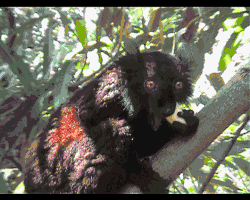 The only other Eulemur species that occurs within the range of the black lemur is the common brown lemur, which overlaps with the black lemur at the extreme southern and eastern edge of its range,[5] and the red-bellied lemur, on the Tsaratanana Massif.[7] The common brown lemur and the red-bellied lemur have different coloration and do not show the extreme sexual dimorphism of the black lemur, making confusion between the black lemur and the other species unlikely.[5][7]