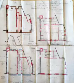 While the building was still under construction in 1860, the Blackburn Exchange Company were looking for sites to build their new Cotton Exchange. The Exchange Company were keen to obtain the land opposite Blackburn Town Hall as they felt their new Exchange should have a central location in the town close to other prominent buildings. At the time, the site included the Feilden's Arms and the partly built Catholic Hall, which the Exchange Company planned to buy and demolish to make way for their new building.[1] Initial talks took place, and the Exchange Company thought that a sale of the Catholic Hall would be forthcoming.
