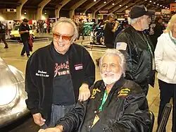 Gejeian then started to drive his dads car at the age of 12 around the ranch.[6] After Gejeian graduated high school, he enlisted in the United States Navy and participated in World War II. Returning from the war, Gejeian desired to build the fastest hot rod in Fresno. His first car was built in 1945 and became the fastest in Fresno. Painted in black, he called this first car "Blackie", which would ultimately earn him his nickname. However, this car would ultimately crash in a race in 1948. Gejeian rebuilt the roadster as a show car and renamed it "Shish Kebob".[7] The car's undercarriage was the first to be entirely chrome-plated.[8] He also started the tradition of placing a mirror beneath the car when showcased.[2][8] The car earned the title "Best of Show" at Gene Winfield's show. In 1955, it was named World's Most Beautiful Roadster by the Oakland Grand National Roadster Show.[5][7]