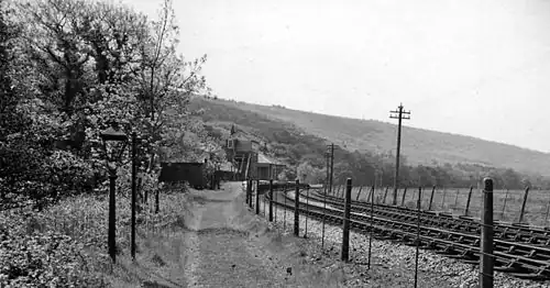 ![]() The site of the station, looking southwest towards Tondu in 1962 | |||||
