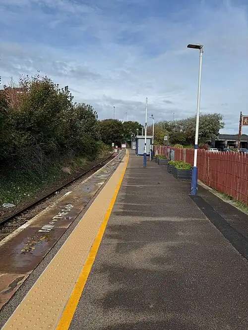 The station is unstaffed and only has basic amenities, namely two waiting shelters. A touch-screen ticket vending machine and timetable poster boards are available on the platform. Train information is provided via a digital CIS display and automated announcements. Step-free access is available via ramps from Waterloo Road and the car park. A regular bus service can be caught to Halfway House or Victoria Hospital on the number 5 and to Blackpool town Centre on the numbers 11 and 68. The 68 also heads to Preston, whilst the 11 goes to Lytham and St Anne's-on-the-Sea.[6]