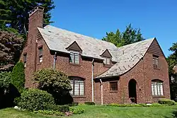 Charles H. Hudson House; 1929; 22 Balton Road, Providence, RI; R. S. Hamilton, architect; Frank N. Gustafson, builder. A one-and-a-half-story, weatherboard and brick, English Cottage dwelling with a cross-gable roof and entrance in the forward-projecting wing. Hudson was a manager for E. I. duPont de Nemours & Company.