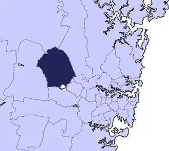Blacktown City Council is a local government area in Western Sydney, situated on the Cumberland Plain, approximately 35 kilometres (22 mi) west of the Sydney central business district, in the state of New South Wales, Australia. Established in 1906 as the Blacktown Shire and becoming the Municipality of Blacktown in 1961 before gaining city status in 1979, the City occupies an area of 246.9 square kilometres (95.3 sq mi) and has a population of 410,419, making it the most populous local government area in Sydney.[2] It is a member council of the Hawkesbury River County Council.