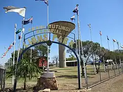 Frank Tutungi Memorial Lions Park is on the corner of the Capricorn Highway and Mackenzie Street. It is named after one of the Blackwater Lions Charter Members, Frank Tutungi, who was one of the original members of the Blackwater Lions Club and was the first from Blackwater to become a District Governor. The park displays the flags of the 37 nationalities of the people who formed part of the original town.[59]
