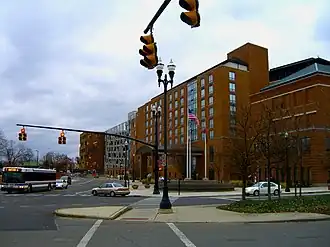 The Blackwell Inn is an upscale full-service hotel located on-campus at Ohio State University in Columbus, Ohio. It is located adjacent to The Max M. Fisher College of Business. The Blackwell Inn is named after Roger Blackwell, a marketing professor who pledged $7 million to the university in 2001.[1] Ohio State operates the hotel, and it is the only hotel located on campus. Dining includes Bistro 2110 on the ground floor and The Blackwell Lounge.
