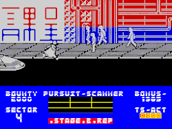 The game first presents the player with a map showing the locations of the fugitive replicants and the player's flying car, which must be steered over a droid on the map. At this point the game switches to a side scrolling game in which the player must avoid crowds and cars whilst in pursuit of the replicant.[4] As the levels increase, so does the level of the replicants. The first level replicants are slow and stupid, but the sixth level ones are faster than a human.[5]