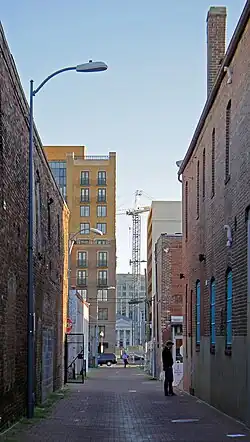 In 1996, the alleys were rezoned from residential to commercial.[9] New development accelerated with the opening of the Walter E. Washington Convention Center nearby in 2003.[3]