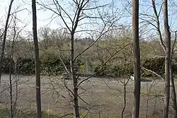 The train station in Blairstown was located in what is now Footbridge Park. The parking lot for the park was originally a small railyard, complete with passing sidings, a turntable and engine house, and a coaling dock that is still extant (for a while in later years, a skate park was located under the old coaling dock). The footbridge across the Paulinskill River was the second one at the site. The present footbridge was dedicated by Blair himself shortly before his death, and provided direct access between the town of Blairstown and the train station, and later to Footbridge Park.