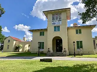 Blandwood Mansion is a historic house museum at 447 West Washington Street in Greensboro, North Carolina. Originally built as a four-room Federal style farmhouse in 1795, it was home to two-term North Carolina governor John Motley Morehead (1841-1844) under whose ownership it was transformed into its present appearance. It is believed to be the oldest extant example of the Italian Villa Style of architecture in the United States, and was designated a National Historic Landmark in 1988.[1][2] In creating the design for Blandwood, architect Alexander Jackson Davis produced a popular prototype for American house designs in the Italianate style: a central tower projecting from the main facade.[2] Saved from demolition in 1964 by preservation-minded Greensboro citizens, the house was opened as a museum in 1976 and remains open to the public today.