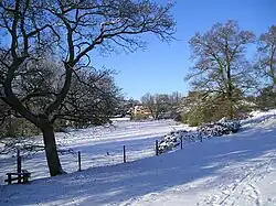 Thomas and William were both buried in St Nicholas's church, but Richard purchased property in Grundisburgh, and was buried in the church there. This property included an ancient farmhouse called "Sigers", which was added to by a younger William Blois (died 1621), an Ipswich merchant with houses in Ipswich and Grundisburgh (who married Frances, daughter of John Tye of Ipswich), and by his son William. Thus improved, "Sigers" became Grundisburgh Hall.[3] Part of the early 17th century Grundisburgh Hall survives: it represents one range (only) of a much larger building of 16th and 17th century dates which formerly extended to the south of the present house, and was knocked down during the 1960s.[4]