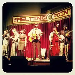 BlueBilly Grit, commonly abbreviated BBG, is an American bluegrass band originating from Maysville, Georgia. The band is a sextet composed of female and male vocals, acoustic guitar, upright bass, mandolin, fiddle, and banjo. BlueBilly Grit has released two albums — Mill Grinder's Blues (2009), Ready For A Change (2011) and Live at the Melting Point (2013). In 2012, BlueBilly Grit won the Telluride Bluegrass Festival band competition. In addition, BlueBilly Grit has performed in numerous radio and television broadcasts, including Nuts and Bolts of Fishing which aired on Turner South and the Moby in the Morning Show which airs on WNGC.[1] [2] [3]