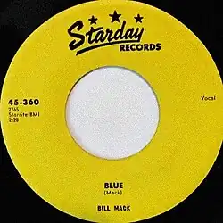 Mack composed "Blue" within 15 minutes and recorded it in two takes at Nesman Recording Studios in Wichita Falls, Texas.[5][14][15] He released it as a 45 rpm single backed by "Faded Rose" for Starday Records, catalog number 360.[1][2][3][4] The Billboard newsweekly on June 2, 1958, described Mack's recording of "Blue" as "A slow-tempo, relaxed item, with Mack's vocal backed by instrumentation featuring a honkytonk type piano. A flavorsome side."[4]