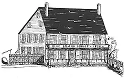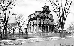 One of the oldest buildings in Blue Island, the American House was built in 1839 as the courthouse for Lake County, Indiana—a function it never actually had the chance to serve, as the county seat was moved from Liverpool to Crown Point in 1840.[55] In 1844, the building was disassembled, sent by raft up the Little Calumet River, and reassembled in Blue Island.