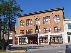 The Blue Island Opera House[17] was built by Blue Island's first mayor John L. Zacharias to replace the Robinson Block, which was destroyed by the Great Blue Island Fire of that year. The opera house was host to vaudeville and repertoire shows until 1913, when it became the Grand Theater and a venue for motion pictures. In later years the building was home to the Blue Island Sun-Standard newspaper and Kline's Department Store. Although the auditorium has been remodeled out of existence, the building, with its award-winning exterior restoration, today provides both commercial and office space to the historic "uptown" district. The building has been designated as a landmark[18] by the Blue Island Historic Preservation Commission[19] It was designed by the American/Canadian architect Hugh Griffith Jones, who also designed Blue Island's first Greenwood School (demolished) and a commercial building with a flat above (c. 1895, extant, also now a city landmark) for Albert and Emma Schmidt at 312 (now 13022) Western Avenue. The architect's drawings for the opera house were used by Jones in the package he prepared to justify his successful application for membership in the Royal Architectural Institute of Canada.[20]