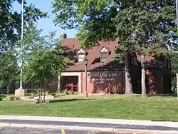 The oldest section of Blue Island's city hall, built in 1891, was designed by Edmund R. Krause, who was the architect of the Majestic Building (along with its recently restored Bank of America Theatre) in Chicago's Loop[47] The first buildings of Northwest Gas, Light and Coke Company in Blue Island were designed by Holabird & Roche[48] in 1902 (demolished). The city also has 22 houses known to have been built with mail-order kits sold by Sears Modern Homes. There is one building in Blue Island listed on the National Register of Historic Places,[49] 27 are included as part of the Illinois Historic Preservation Agency's Historic Architectural and Archaeology Resources Geographic Information System,[50][51] and 41[52] individual buildings and one district have been designated as local landmarks by the Blue Island Historic Preservation Commission. The city's newest development is Fay's Point, a gated community built at the confluence of the Calumet River and the Calumet Sag Channel on the site of the home of Jerome Fay, who had settled there in 1850.[53]