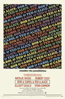 Bob & Carol & Ted & Alice is a 1969 American comedy-drama film directed by Paul Mazursky, written by Mazursky and Larry Tucker, who also produced the film, and starring Natalie Wood, Robert Culp, Elliott Gould, and Dyan Cannon. The original music score was composed by Quincy Jones. The cinematography for the film was by Charles Lang. The film received four Academy Award nominations, including ones for Gould and Cannon. Patricia Welles wrote the paperback novel from Mazursky and Tucker's screenplay.