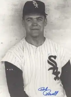The graduate of Michigan State University signed a $36,000 "bonus baby" contract with the Chicago White Sox in 1955. An outfielder when he signed, Powell was kept on the ChiSox' Major League roster for 1955, 1956 and part of 1957 under the Bonus Rule of the time. He appeared in only two Major League Baseball games as a pinch runner — both times against the Kansas City Athletics. On September 16, 1955, he ran for slow-footed White Sox pinch hitter Ron Northey, who had singled, and was erased on a force play at second base on the first pitch to the next hitter, Minnie Miñoso.[2] On April 20, 1957, he ran for another pinch hitter, Walt Dropo, advanced to second base on a hit by Luis Aparicio and then scored his only MLB run on a single by Nellie Fox.[3] Both Aparicio and Fox are now in the Baseball Hall of Fame.