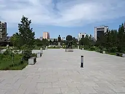 The memorial garden consists of pedestrian paths, green area, flower field, sculptures and the statue of Bogd Khan. It is designed by L.Gankhuyag.[1] The memorial garden spreads over an area of 1.4 hectares. It sits beside the Green Palace.[2]