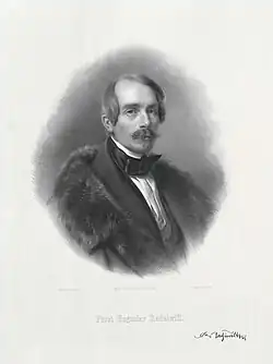 Prince Bogusław Fryderyk Radziwiłł (3 January 1809 – 2 January 1873) was a Polish nobleman and Prussian military officer and politician. He lived in the Kingdom of Prussia, where he was a member of the Prussian parliament (later, of the Prussian House of Lords). He attained the rank of general within the Prussian Army.