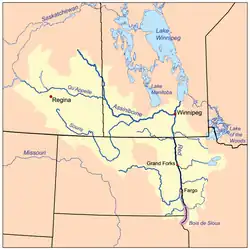 ![]() Red River drainage basin, with Bois de Sioux River highlighted | |