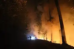 On August 15, fire lines were improved,[5] and priorities of the fire crews shifted from construction of fire lines to keeping the footprint size minimal.[5] By August 16, it was determined to have burned 12,842 acres of land, and on August 17 crews worked to improve fire and dozer lines along the Orleans, Pearch Creek and Short Ranch areas. By August 19,[6] priorities again shifted to containment along the Trinity Alps Wilderness.[7][8][9] On September 20, the fire reached 100% containment.[10]