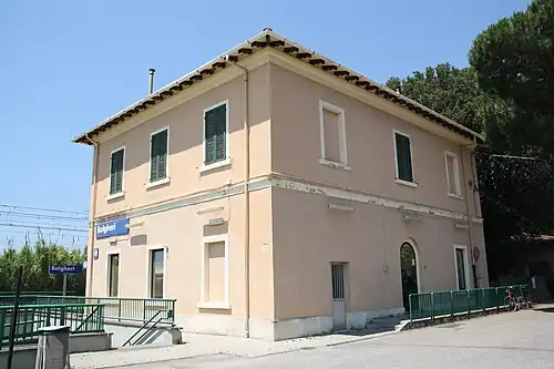 Bolgheri railway station is an Italian railway station on the Tirrenica railway line, located in the municipality of Bibbona, Province of Livorno, Tuscany. It takes its name from the nearby village of Bolgheri.