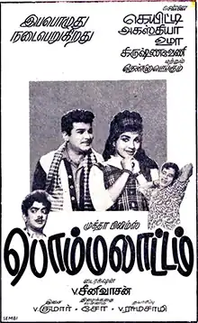 Bommalattam (transl. Puppet Show) is 1968 Indian Tamil-language comedy film, directed by Muktha Srinivasan and produced by V. Ramaswamy. The screenplay was written by Cho Ramaswamy from a story by Madurai Thirumaran. It stars Jaishankar, Jayalalithaa, Nagesh, Major Sundarrajan, Cho Ramaswamy and Manorama. V. S. Raghavan, Sachu and O. A. K. Thevar play key roles. The film was released on 31 May 1968.[2]
