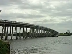 The Bonita Beach Causeway is a causeway with a series of four low-level bridges located in Southwest Florida traversing the barrier islands of Estero Bay connecting the town of Fort Myers Beach with Bonita Springs. It carries Estero Boulevard (County Road 865) and is 4.1 miles (6.6 km) long from end to end. Each bridge on the Bonita Beach Causeway is named after the body of water it crosses.