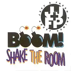 "Boom! Shake the Room" is a song by American hip hop duo DJ Jazzy Jeff & the Fresh Prince. The track samples the 1973 song "Funky Worm" by the Ohio Players.[3] Released on July 16, 1993, by Jive Records as the second single from the duo's fifth studio album, Code Red (1993), the single peaked at numbers 13 and 12 on the US Billboard Hot 100 and Cash Box Top 100, as well as topping the charts of Australia, Ireland, Spain, and the United Kingdom. Its music video was directed by American film director Scott Kalvert, featuring the duo performing onstage in front of a live crowd.