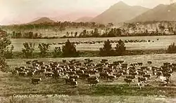The history of Boonah township is connected to the nearby settlement of Dugandan which was named after the Dugandan pastoral run that was taken up in August 1844 by Macquarie McDonald and his brother Campbell Livingstone McDonald.[6][7] Dugandan was one of the earliest pastoral holdings in Queensland.[8] In its early years the area was stocked with sheep but the region was discovered to be well suited for cattle and over time became renowned for the quality of its beef and dairy herds.[8] Adjacent to the property of Dugandan was Coochin Coochin station.[9] In January 1861, a massacre of Ugarapul people, estimated to be as many as 40, is recorded in the area of Hardie's Station, Dugandan Scrub.[10] In 1873, part of the Coochin Coochin pastoral run was acquired by Frederick Macarthur Bowman who named his property Denelgin. Frederick Bowman took advantage of the suitability of the area for cattle and is considered one of the dairying pioneers of the region.[11]