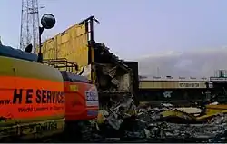 Demolition of the ground eventually started on 10 January 2008, over five years after the final game was played there, and was completed during March. The North Stand and the terracing on the South and East Stands were eventually demolished in January 2010 after years of vandalism and arson attacks. Humberside Fire and Rescue Service had to be called out nearly 100 times during 2009 to deal with the situation.[15][16][17] The six floodlights that had dominated the West Hull skyline were finally dismantled in early 2011.