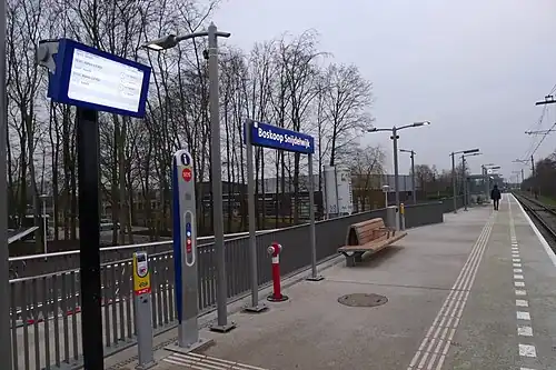 Boskoop Snijdelwijk railway station is a railway station in Boskoop, South Holland, Netherlands that opened on 10 December 2017.[1] It is located on the Gouda–Alphen aan den Rijn railway, which connects Gouda and Alphen aan den Rijn, between Boskoop and Waddinxveen Noord stations.