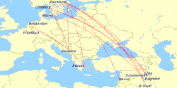 From January to February 2015, Bosnian Wand Airlines offered flights to the following destinations:[4]