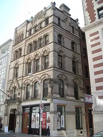 The Boston Young Men's Christian Union is a historic building at 48 Boylston Street in Boston, Massachusetts and a liberal Protestant youth association. When Unitarians were excluded from the Boston YMCA (which was evangelical) in 1851, a group of Harvard students founded a Christian discussion group, which was incorporated as the Boston YMCU in 1852.[2] In 1873, the organization decided to construct its own building. $270,000 was raised, and construction on the original segment completed in 1875. The building was designed by Nathaniel Jeremiah Bradlee, constructed in a High Victorian Gothic style, and included ground-level retail. Several additions were made, including in 1956.[2] The building was designated a Boston Landmark by the Boston Landmarks Commission in 1977 and added to the National Historic Register in 1980. Boston YMCU owned Camp Union, a 600-acre (240 ha) camp, in Greenfield, New Hampshire (1929–1993) (now Barbara C. Harris Camp & Convention Center of the Episcopal Diocese of Massachusetts). From its renovation in 2003 to 2011 it was called the Boylston Street Athletic Club, and later the Boston Union Gym or BYMCU Athletic Club.[3] The Boston Young Men's Christian Union claims to be "America's First Gym".[4]