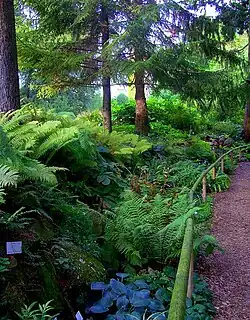The garden's outdoor sections contains plants from bogs and heath, an alpine garden, fern ravine and inland dune, weedy vineyard, and a systematic collection. The herbarium contains over 250,000 specimens representing more than 50,000 taxa.
