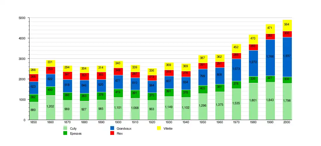 The municipalities of Cully, Epesses, Grandvaux, Riex and Villette (Lavaux) merged on 1 July 2011 into the new municipality of Bourg-en-Lavaux.[3]
