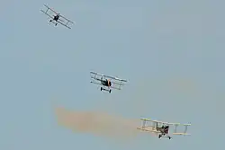 Great War Display Team | Six WW1 Fighters | The Great War Display Team (GWDT) started out in 1988 and was originally called The Wombats. It was an ad-hoc collection of aircraft including five SE5as, two Fokker Dr.Is and a Fokker D7, many of them flown by their builders. | ![]() | |