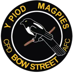 Bow Street F.C. are based at Rhydypennau near Bow Street in Ceredigion, Wales, about 4+1⁄2 miles (7.2 km) north-east of Aberystwyth, and are currently playing in the Ardal NE League. The team are nicknamed the Magpies (Welsh: piod), from the time when their strip was black and white stripes.