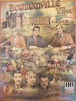 1990 marked 100 years of the establishment of Bowmanville High School. A large reunion was held on June 22 - 24 of that year, with over 3 years of planning to make that magic happen. The first day included the reunion and reception with people touring the decade rooms set up on the first floor in rooms 141, 143 and 146. The next day was a tour of Bowmanville Senior Public School, the old BHS, and the new BHS. Later that day was the Favorite Musicals Revue, arranged by retired drama director Bob Sheridan. That evening had 3 period dances for '50s graduates and before, '60s graduates and '70s to '90 graduates at the Bowmanville Recreation Complex (later Garnet B. Rickard Recreation Complex), and the Bowmanville Lions Community Centre (later Clarington Beech Centre). The last day was a pancake breakfast held in the cafeteria in the morning.