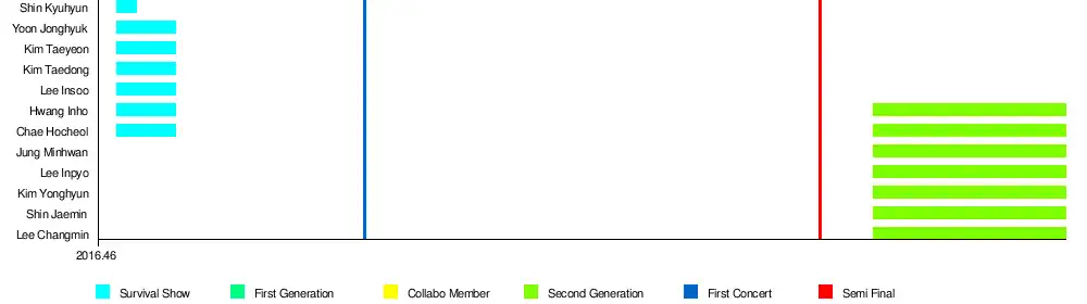 The survival show with the same name as the group was a 2016 reality boy group unit survival show that aired every Saturday 10pm on Mnet and tvN. It was a large-scale project in which the units of a selected number of members would be produced from a pool of 49 free-agents.[44]